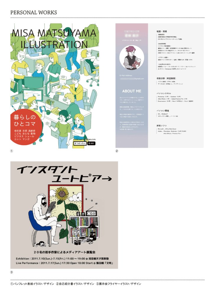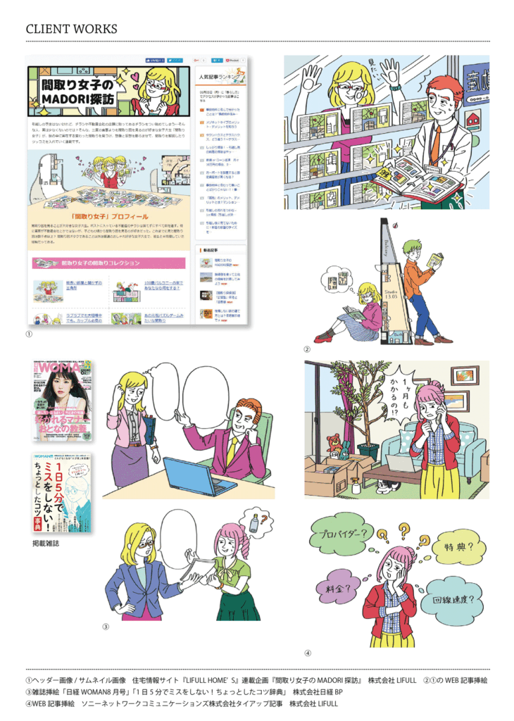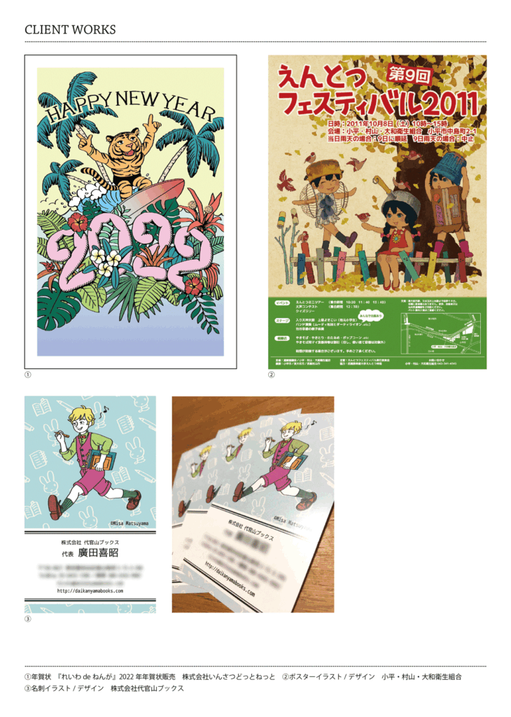 公開可能なデザイン制作物と、イラストの一部を掲載しています。イラストを中心としたWEBサイトはこちらからご覧いただけます。
